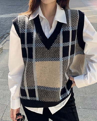 2022 V Neck Knitted Sweaters For Women Casual Knit Vest