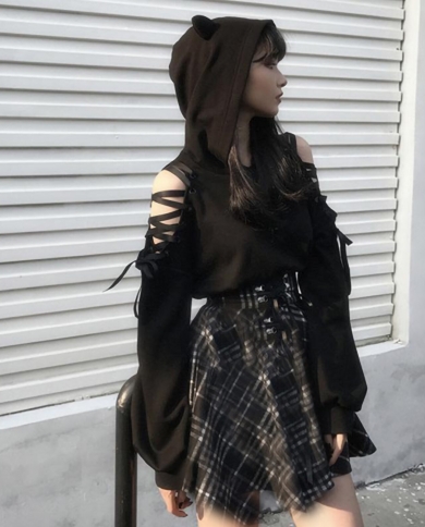 Gothic Punk Hoodies Women Cat Ear Hooded Sweatshirt 2022 Autumn