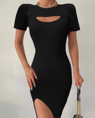 Women Elegant Hollow Out Bust Knitted Dress Soft Sweater Dress