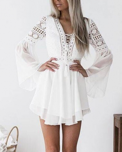 Womens Elegent Lace Long Sleeve Hollow Out Mini Dress Bodycon