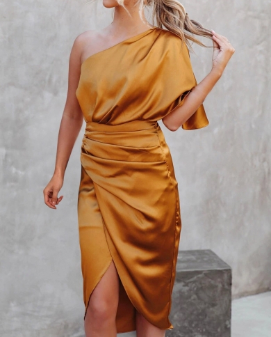 Fashion Stretch One Shoulder Elegant Dress Women High Split Ruched