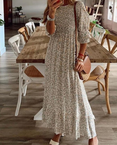 2022 Autumn Bohemian Women Maxi Dress Casual Long Sleeve High
