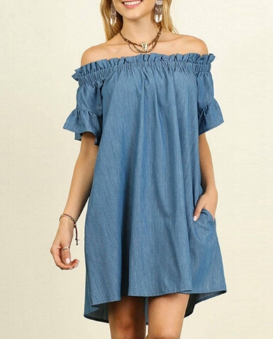 Summer Loose Casual Denim Dress For Women Off Shoulder