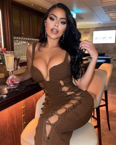 Elegant Cut Out Sleeveless Bandage Maxi Dress Women Club
