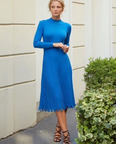 Womens New Mid-length Knitted Solid Color Pleated Dress