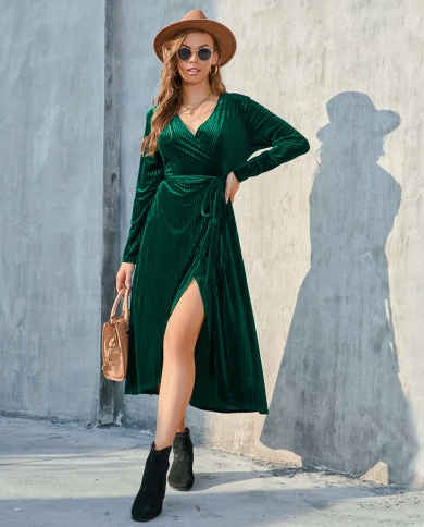 Large Size Womens Clothing Fallwinter Slit Strap Velvet Mid-length Dress