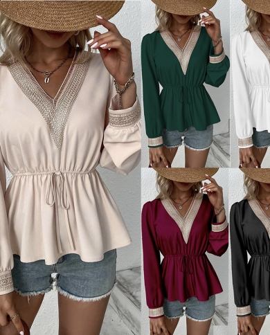 Womens New V-Neck Lace Long Sleeve Elegant Chiffon Top