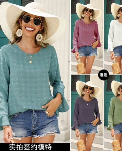Womens New Pullover Round Neck Flared Sleeve Polka Dot Graceful