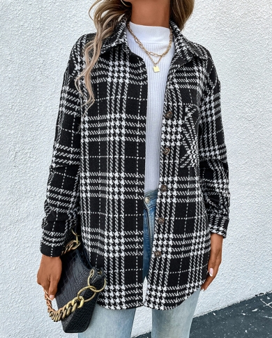 Womens New Casual Versatile Fashion Plaid Long Sleeve Jacket
