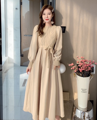 Autumn Winter Female Vintage Elegant Midi Knitted Dresses Women