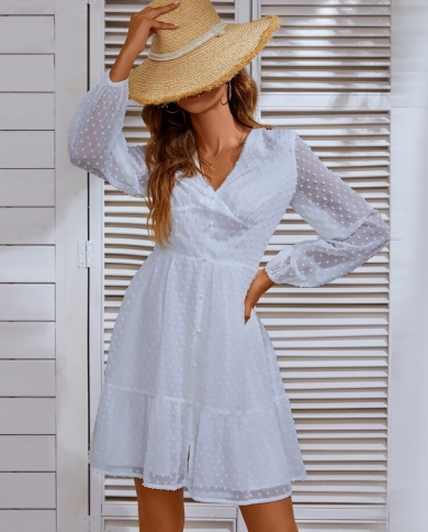 Autumn Long Sleeve Elegant Chiffon White Dress Women Solid Color