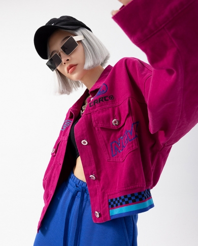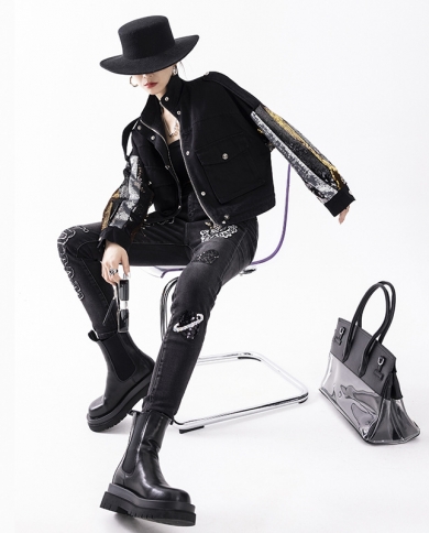 Womens Early Autumn Denim Jacket Short Sequin Embroidery Casual Fashionable