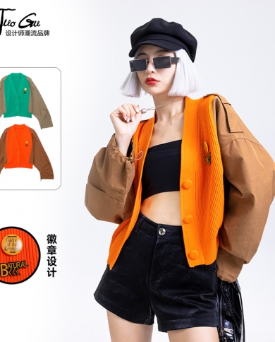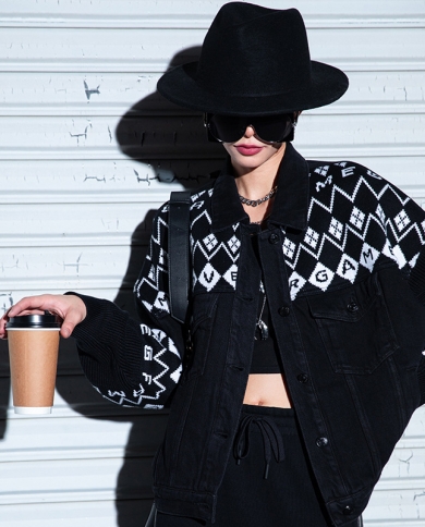 Early Autumn Denim Jacket Womens New Loose Knitted Stitching Casual