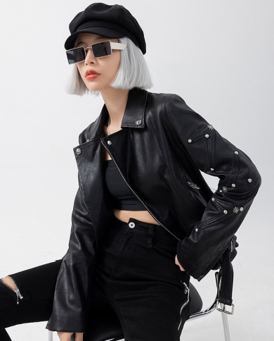 Womens Fashion New Retro Style Rivet Short Long-sleeve Leather Jacket