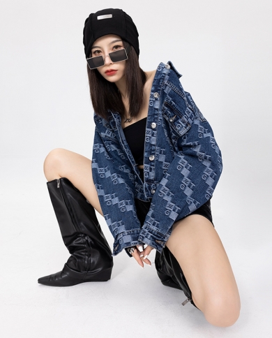 Womens Fashion Jacquard Short Loose Denim Jacket