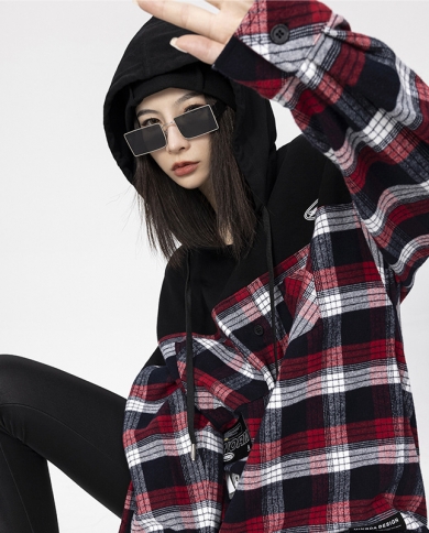 Womens Fashion Plaid Shirt Jacket Autumn New Loose Hoodie