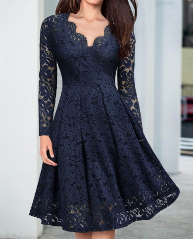 2022 New Womens Elegant Wedding Long Dress Lace Floral Vneck
