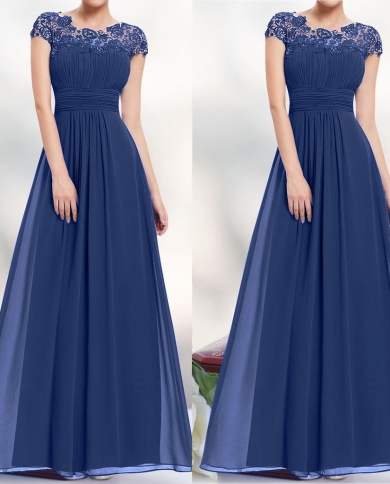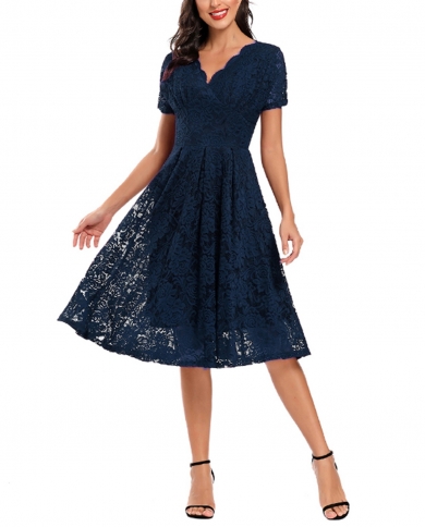 Womens Elegant Floral Formal Lace Vintage Short Sleeve Slim Wedding