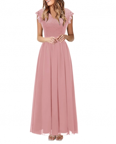 Womens Formal Lace Party Dress Elegant Length Sleeveless Chiffon Pink