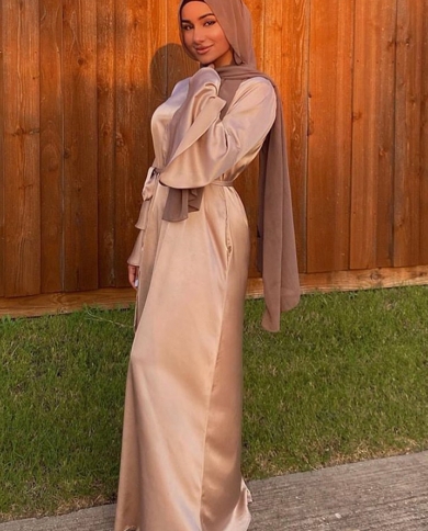 2022 Muslim Women Abaya Maxi Dress Loose Satin Long Layered