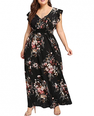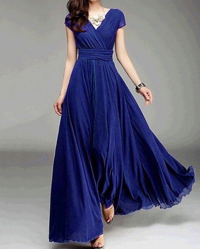 Womens Fashion Plus Size V Neck Long Dresses Elegant Casual