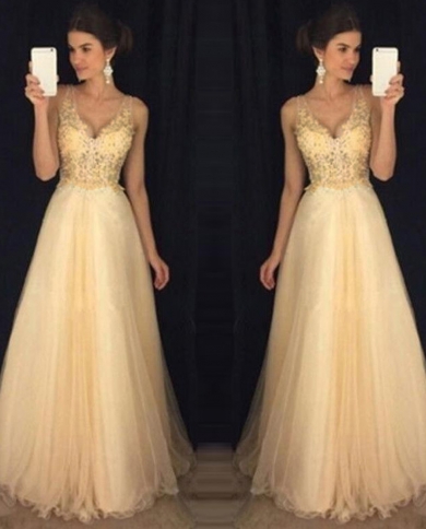 Women Fashion Gold Sequins Lace Embroidery Formal Dress Wedding