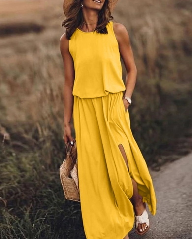 Fashion Solid Colod Sleeveless Party Long Dress Women 2022 New