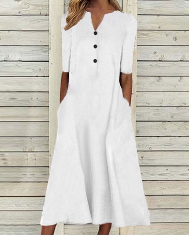 Summer Eleagnt Vintage Button V Neck Midi Dress For Women