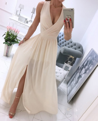 Elegant Deep Vneck Summer Women Party Dress Solid Sleeveless
