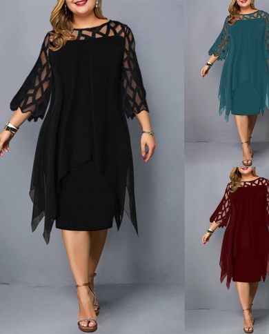 Plus Size Womens Dress Summer Loose Lace Chiffon Midi Dress