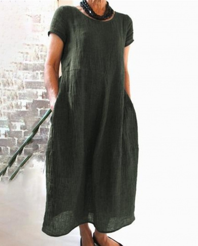 Ladies Summer Comfortable Loose Cotton Linen Long Dress Womens 2022