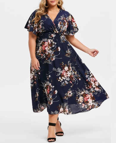 Plus Size Floral Maxi Dress Womens Summer V Neck Bohemian