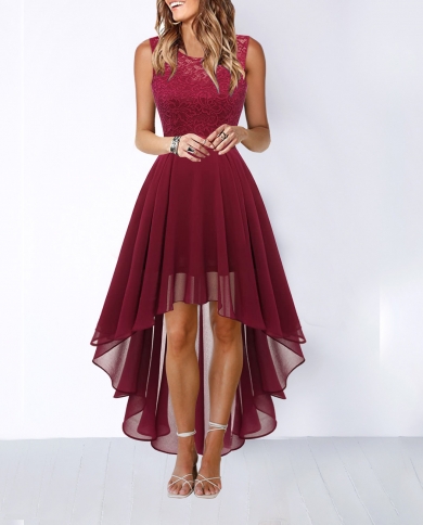 Womens Lace Floral Dress Bow Belt Elegant Irregular Length Dress