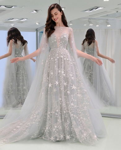 New Star Sequiend Wedding Dress Women Elegant Lace Mesh