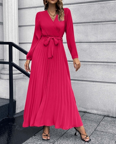 Autumn Womens Elegant Slim Long Sleeved V Neck Maxi Dress