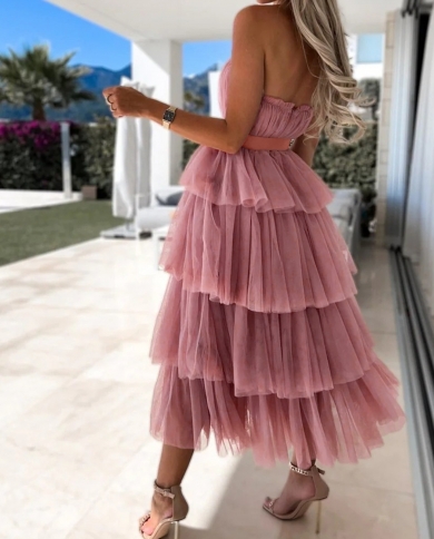 Womens Elegant Mesh Temperament Wrap Chest Party Dress Fashion