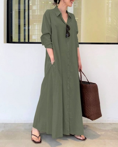Womens Fashion Muticolor Patchkwork Long Casual Maxi Dresses Loose Button