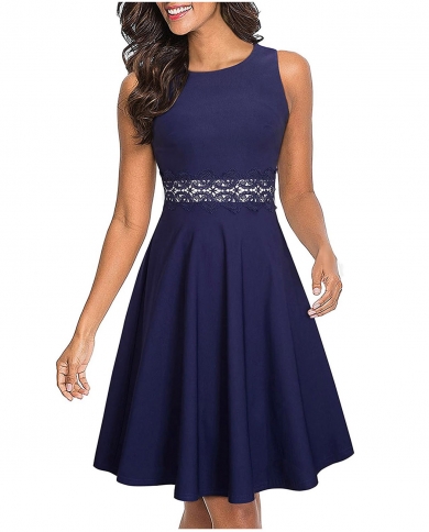 Women Summer Dress Elegant Temperament Lace Patchwork Pleats