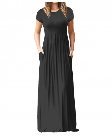 Women Summer Baggy Solid Color Long Dress High Waist Basic