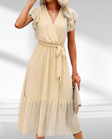2022 Fashion Elegant Ruffle Sleeve Wraped Dress For Women