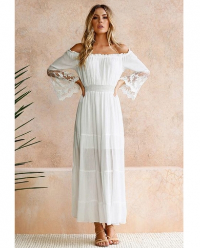 Elegant Lace Off The Shoulder Strapless Long Dress Summer Womens