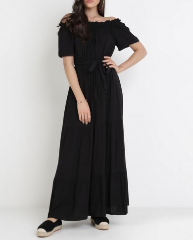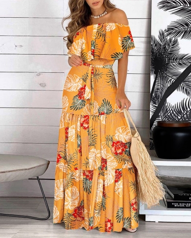 Summer Womens Vintage Ruffles Off Shoulder Maxi Sundress Bohemian