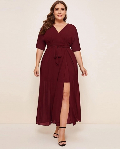 Summer Womens Plus Size Tie Up Long Dress Elegant Solid