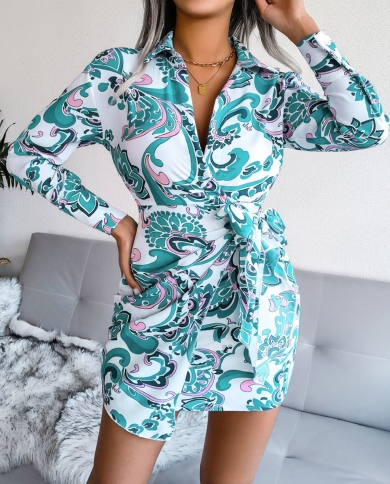 Women Lace Up Corset Tie Waist Long Sleeve Mini Dresses