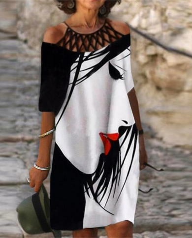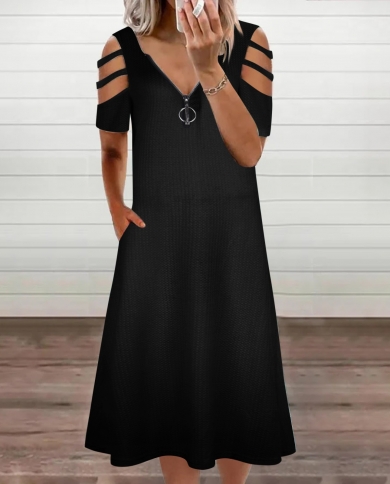 2022 Women Summer Dress Vneck Hollow Out Short Sleeve