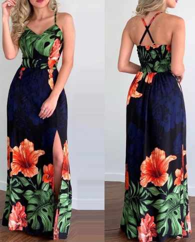 Summer V Neck Floral Long Strap Dress Women Slim
