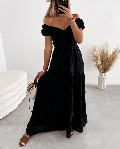 Off Shoulder Solid Color Slim Long Dress Women 2022
