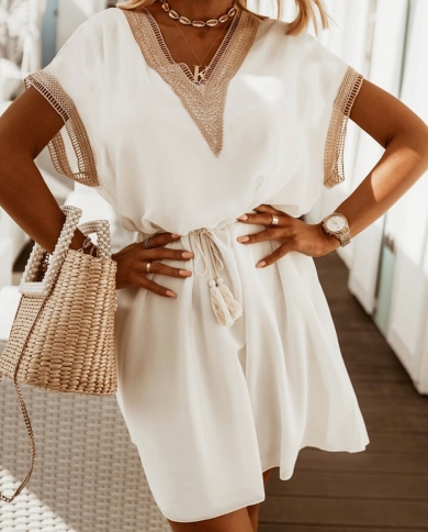 Elegant Boho Lace Up Beach Dress Women Temperament Office Commuter