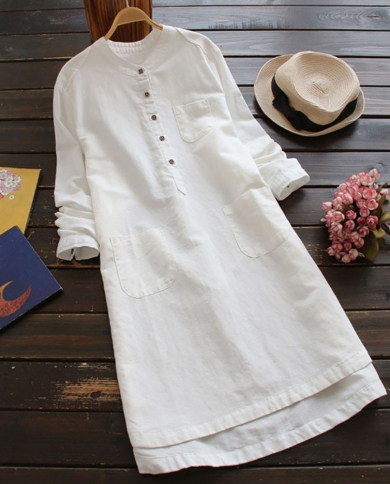 Dress For Women 2022 Fashion Casual Solid Cotton Linen Dress