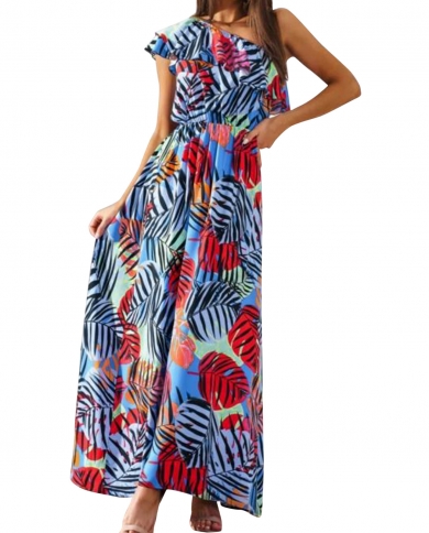 Summer Tropical Bohemian Ruffles One Shoulder Long Dress Women Casual